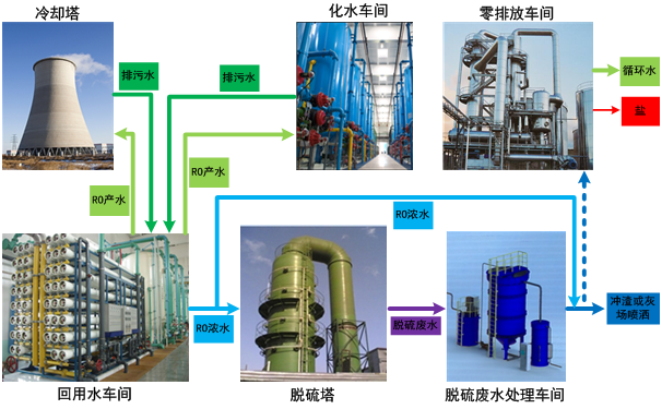 電廠水系統(tǒng)整體解決方案:在因地制宜,并統(tǒng)籌兼顧技術(shù)先進(jìn)、經(jīng)濟(jì)合理、便于維護(hù)的原則下。將電廠的污水處理納入整個廠區(qū)的水處理系統(tǒng),結(jié)合各個單元的實(shí)際用水情況和排水情況整體解決,繪制全廠水量平衡圖,針對不同水質(zhì)特性,分而治之,制定不同的合理處理工藝,從而實(shí)現(xiàn)整個廠區(qū)的水處理零排放。